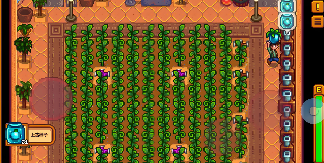 远古果实作为跨季度的高价值作物,若玩家已在第一年通过温室完成初步积累,第二年春季可考虑扩大种植规模。这种作物生长周期跨越春夏秋三季,单次投入带来长期回报,但需要前置的种子储备和灌溉系统支持。对于资源充足的玩家而言,将部分优质土地分配给远古果实能实现收益最大化,不过需注意其较长的生长周期会占用春季宝贵的时间窗口。