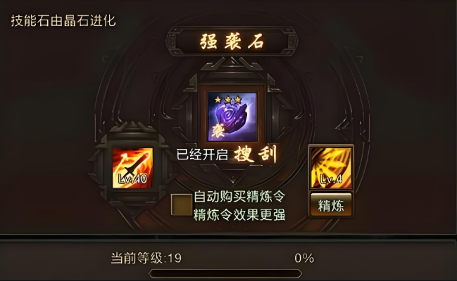 把晶石技能升级为更高级的技能石,需要满足特定条件。晶石等级必须达到21级,并且拥有4个相同的5级技能。这时候可以去点券商店购买对应的技能石升级卷轴,使用后就能将普通晶石进阶为技能石。进阶后的技能石属性会大幅提升,比如斩杀石、乱舞石等,战斗力直接翻倍。技能必须完全相同才能触发进阶,否则会失败。