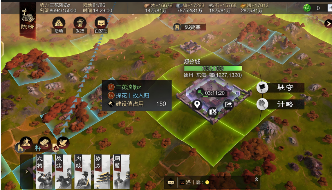 分城征兵速度受募兵所等级和城池繁荣度影响。如果分城属于同盟占领的城池,繁荣度越高,征兵效率会有小幅提升。分城部队的体力恢复速度较慢,建议在分城建造酒馆(需九级地分城),能显著加快武将体力恢复。分城征兵时尽量集中资源培养一队主力,避免分散导致战斗力不足。