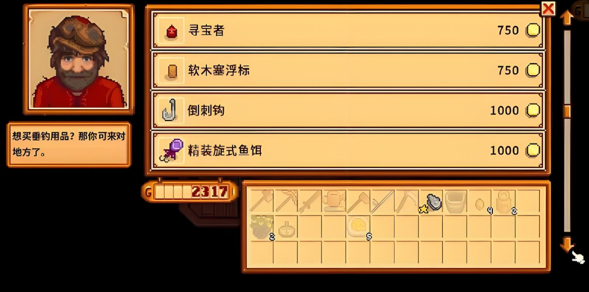 渔具的种类可丰富了,每种都有独特的功能。比如旋式鱼饵能稍微提高上钩率,精装旋式鱼饵则能减少等待时间。陷阱浮标特别适合钓难缠的鱼,它能减慢进度条下降的速度。软木塞浮标可以增加绿色钓鱼条的大小。寻宝者浮标能增加钓到宝箱的几率,想收集古物的小伙伴一定要试试。
