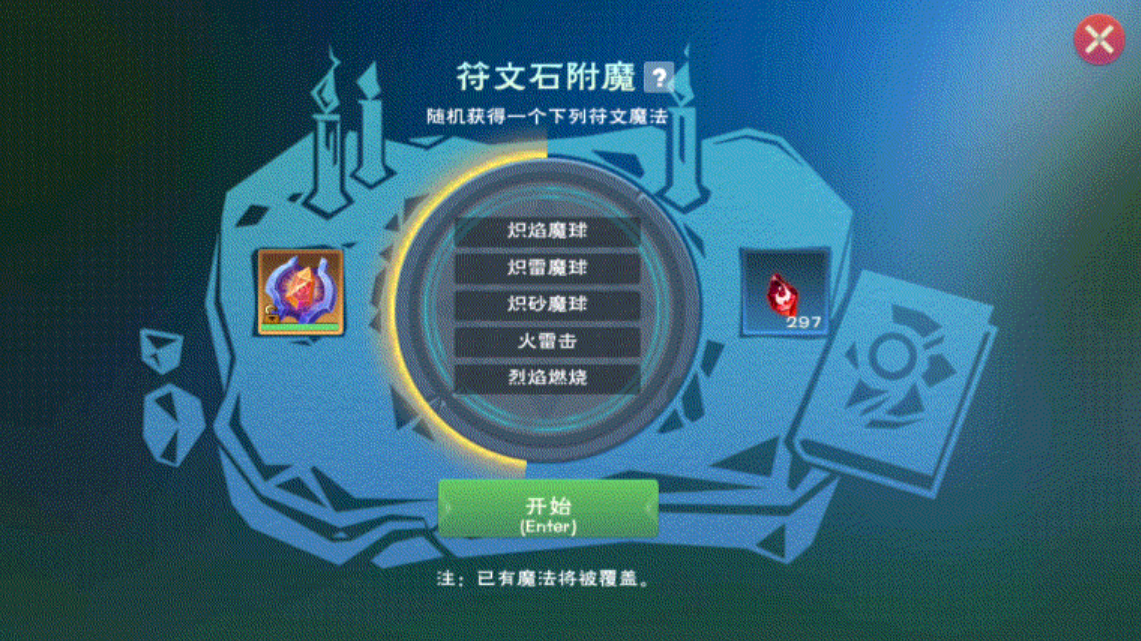 混沌魔法的获取依赖于符文魔法台的搭建。玩家需消耗40铁锭、20符文原石和10魔晶制作该设施,其中铁锭通过熔炼铁矿获得,符文原石需前往龙树岛挖掘符文矿石。融合时需在界面中放入特定符文组合,例如两个雷符文与一个土符文可能触发终极闪光,但结果具有随机性。由于混沌魔法无固定合成路径,玩家需通过反复尝试积累经验。