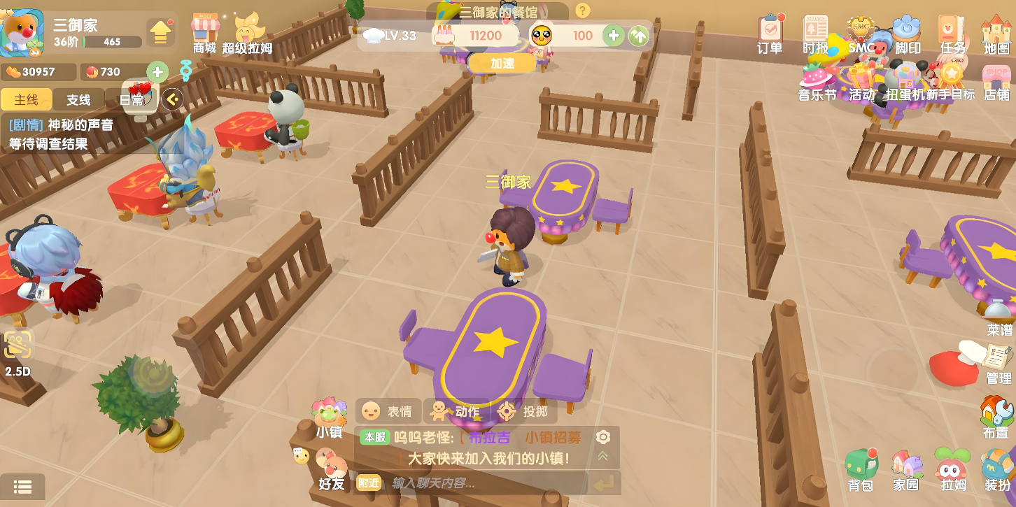 豪华值与好评度越高客流量越大,可通过购买厨具桌椅提升豪华值,使用餐厅好评手册道具可快速刷满好评。加速功能能立即结算菜品收益但需消耗金豆,使用前需确保备有至少100份菜品。每日有5次快速制作机会,备齐食材后可直接获取成品。小镇研究所的技能加成也不容忽视,其对小费收益和烹饪效率有显著提升。