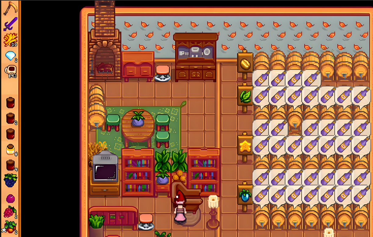 酿酒是夏季赚钱的黄金组合,尤其是用上古水果或杨桃酿造果酒。先在温室或姜岛种植上古水果,通过种子制造机扩大规模,成熟后放入酿酒桶等待一周即可获得高额回报。橡树树脂是制作酿酒桶的关键材料,建议从春季就开始在农场外围种植橡树并挂上树液采集器。如果觉得酿酒周期长,可以用腌菜桶处理蓝莓或甜瓜,虽然利润略低但周转更快。养殖方面,鸡舍和牛棚的蛋黄酱、奶酪也是稳定收入来源,记得每天收集产品。