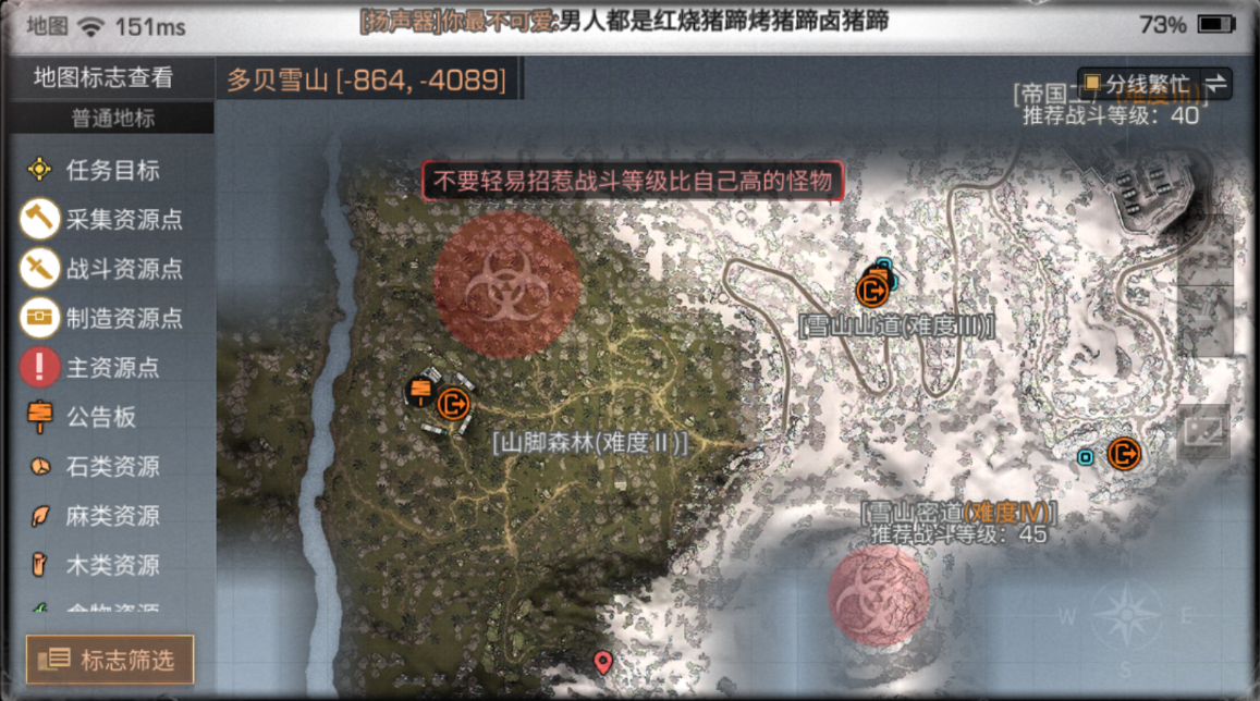 多贝尔雪山区域的难民救助需特别注意环境威胁。该区域会间歇出现感染潮,且已被帝国士兵占领,低等级玩家应避免单独行动。前往多贝尔雪山需通过难民营入口的飞机传送,建议组队并携带抗寒装备。雪山中的三名探险家NPC分布在河流中流左侧和森林中,可提供额外任务线索。