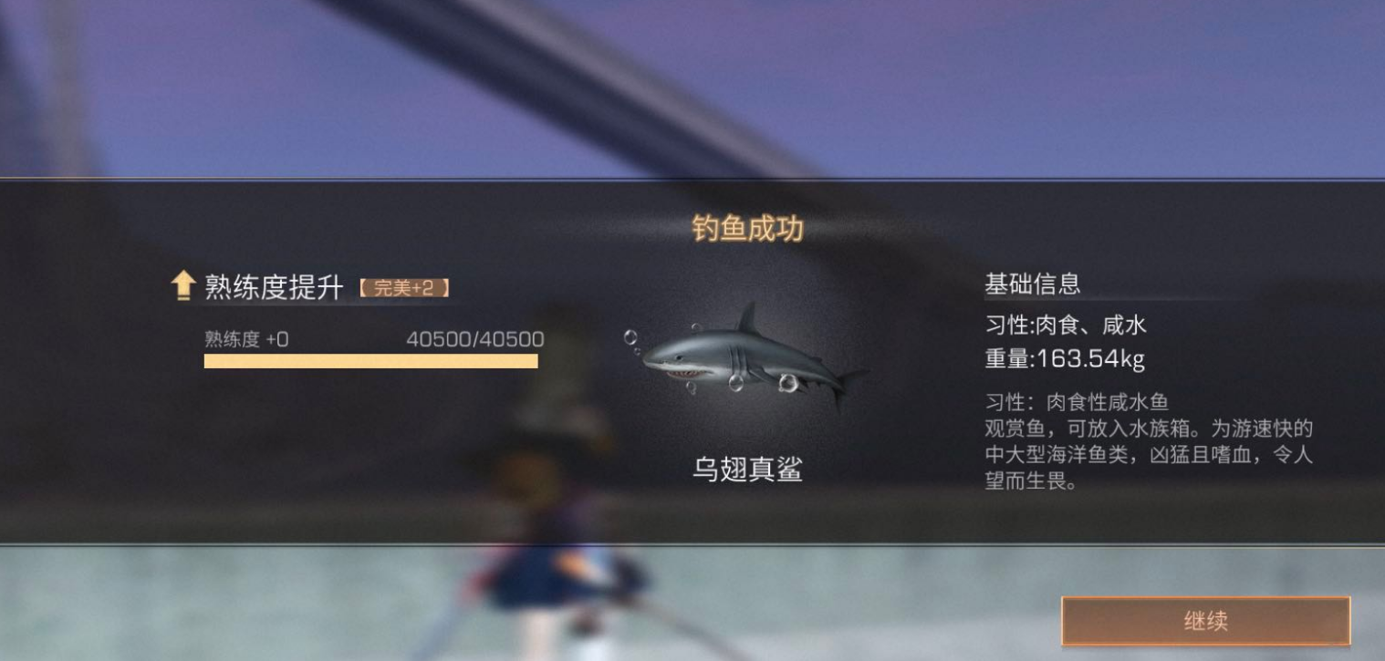 乌翅真鲨作为明日之后中稀有的观赏鱼类,其钓取概率受多种因素影响。根据实测数据,在圣罗纳市盐碱赤地左侧海域使用五级鱼竿配合肉饵时,成功钓取的概率相对较高,但整体仍属于低概率事件。该鱼种属于中大型肉食性咸水鱼,对钓鱼操作和装备要求严格,手动操作的成功率明显高于挂机钓鱼。
