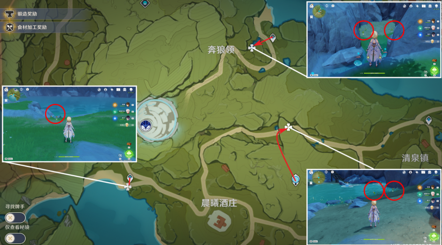 清泉镇湖边的传送锚点周围可一次性收集15朵,沿湖岸分布且无遮挡物,视野开阔。星落湖七天神像附近有13朵,地势低平便于快速移动。达达乌帕谷的7朵集中在水边,路线单一耗时短。晨曦酒庄虽分布分散,但配合传送点可高效完成12朵的采集。风龙废墟和明冠峡的嘟嘟莲数量较少且位置偏远,性价比低,建议优先放弃。