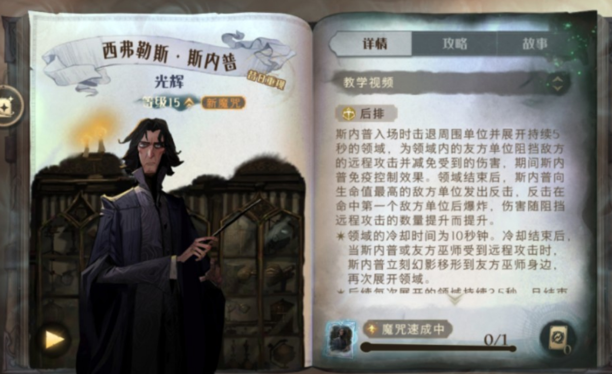 斯内普在游戏中是个非常强力的角色,他的技能组合特别适合喜欢策略性玩法的你。作为魔药学和草药学专家,他不仅能制作各种药剂,还能在战斗中打出高额伤害。想要用好他,得先了解他的核心机制——普攻会触发神锋无影效果,配合时间转换器分身能快速压制对手。记得优先升级他的品质和技能树,这样能大幅提升输出能力。