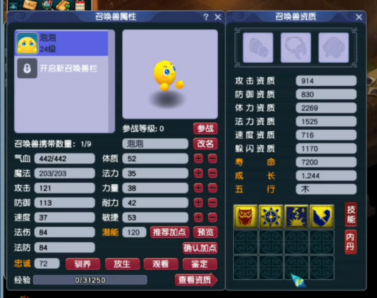 合成成功后可通过资质丹、成长丹提升属性,内丹推荐碎甲刃(攻宠)或通灵法(法宠)。若作为血宠使用,专属内丹减伤结果能显著增强生存能力。需注意泡泡的成长值普遍较低,因此不建议作为法宠主力,但其高资质与技能组合在PVE中仍有优势。观看资深玩家的合成视频攻略可学习细节操作,但需结合自身资源量力而行。