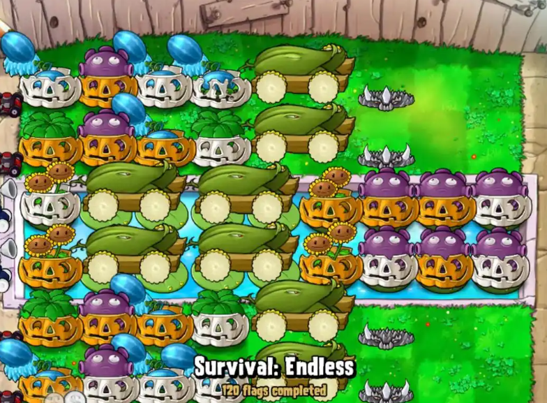 阵容摆放需要根据游戏模式、关卡特点以及僵尸类型进行针对性调整。在无尽模式中,八炮冰瓜阵是公认的高效阵容,核心由玉米加农炮、冰西瓜投手和忧郁菇组成。玉米加农炮需放置于安全的后排位置,确保其持续输出能力;冰西瓜投手提供群体伤害和减速效果;忧郁菇则用于清理漏网的小型僵尸。水路区域需放置香蒲或猫尾草应对气球僵尸,同时搭配高坚果阻挡水路僵尸推进。前排地刺王可有效牵制冰车僵尸,但需避免覆盖南瓜头以防影响撑杆僵尸的跳跃判定。