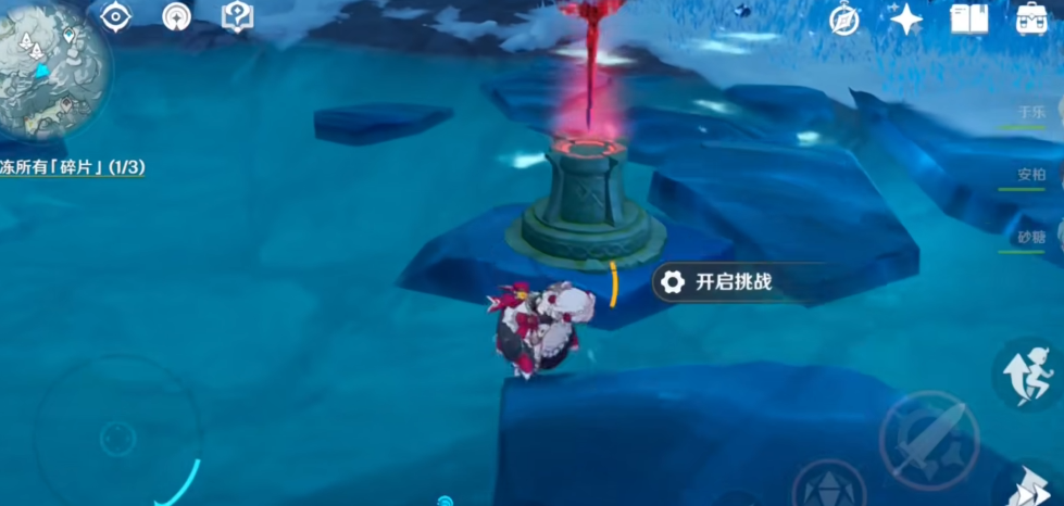 成功完成挑战后,坚冰周围的屏障就会解除。这时需要在附近寻找深赤之石,击碎后拾取并攻击坚冰。总共需要找到四个深赤之石,分别攻击四次才能完全解封。有个深赤之石藏在碎石堆里,需要用攻击打碎石堆才能看到。解封后启动碎片,就能顺利完成整个挑战流程。记住要合理分配时间,先找仙灵再挑战,最后解封,按这个顺序来就能轻松应对。