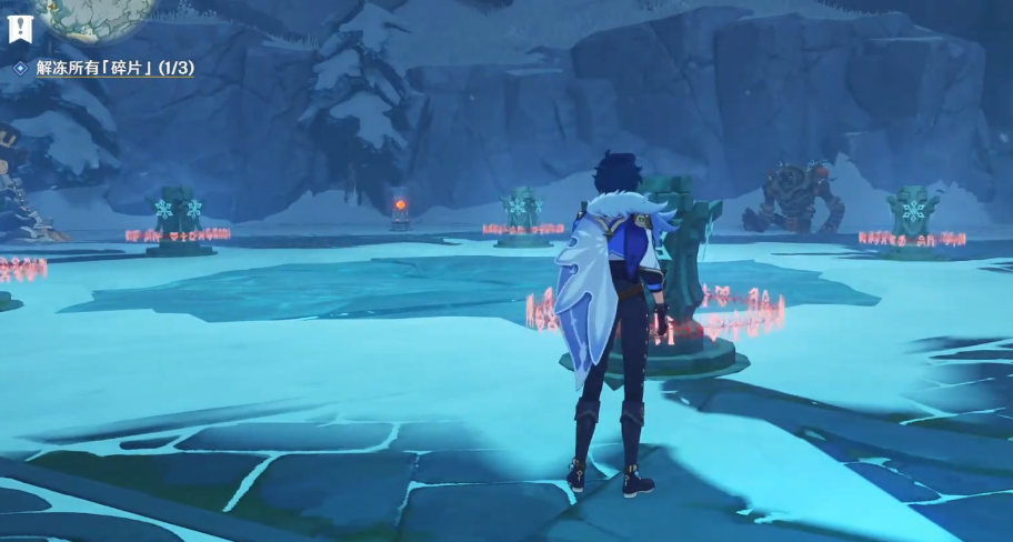 击碎这些红色晶体可获得短暂buff,使下一次攻击能破除遗迹守卫的护盾值。场地中央的五个火柱会轮流激活,靠近可缓解严寒积累,但需注意守卫可能将玩家击飞至未点燃区域。当重型守卫生命值降至30%时会召唤追踪导弹,应引导其靠近火柱,利用爆炸范围伤害反制。