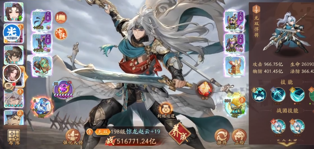 赵云则是典型的突进型主C,凭借七进七出层数叠加,越战越勇。他的技能对单列敌人造成高额伤害,并且有概率额外增加怒气,快速释放大招。赵云在蜀国阵容中表现尤为亮眼,尤其是搭配刘备、张飞等武将时,能最大化他的输出能力。不过赵云对站位要求较高,需要副核武将配合击杀后排,否则容易被集火秒掉。如果你喜欢速战速决的打法,赵云会更对你的胃口。