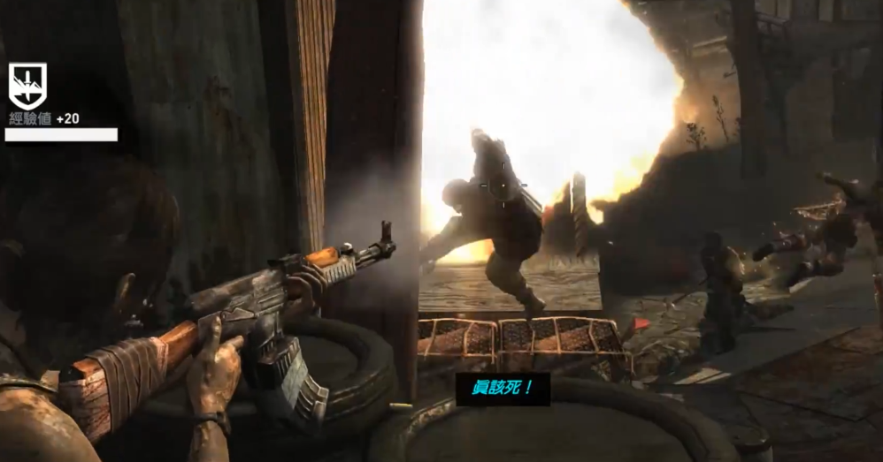 跳上半路会触发剧情,落地后要应对大量敌人,这里有两根绳索不断有敌人滑过来,还有不少投弹兵。建议先解决滑索敌人,再用火箭点燃投弹兵让他们自爆。全部解决后借敌人绳索爬到对面,爬楼梯上到绳桥时注意听罗斯指令,他喊停时就别动,等他解决看守再继续。最后爬上桥面通过小路就能到达洞穴入口。