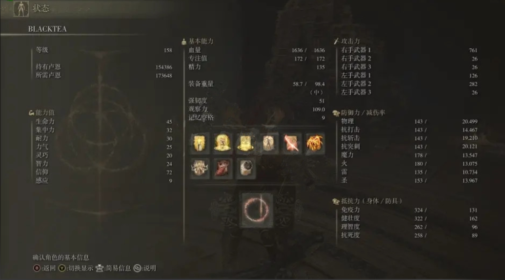 加点策略上,生命值建议优先提升至20点以确保容错率,智力则需尽早达到18点以满足陨石杖的需求。集中力影响蓝条上限,前期建议维持在20点左右以保证法术续航。力量与敏捷仅需满足装备需求即可,不必过度投资。探索时需留意黄金种子,用于升级圣杯瓶次数,提升血蓝回复效率。