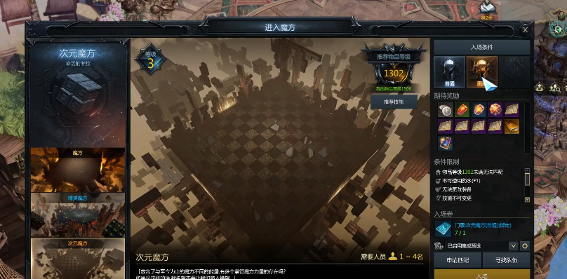 打开魔方副本后能看到蓝红黄三种颜色的魔方入口。蓝色魔方要求等级达到500以上并消耗3张希里安的指令,红色魔方需要700级以上和同样数量的指令,黄色魔方则只需250级和3张指令。满足条件后点击匹配就能组队进入,建议提前准备好足够的入场材料。