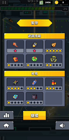 中期记得选榴莲和火箭发射器这类范围伤害技能,配合压制力场的减速效果可以形成安全区域。燃油桶也是个不错的选择,虽然伤害不算顶尖但范围很大。如果觉得生存压力大,可以选一两个增加生命上限的被动技能。记住不要到处乱跑,尽量在一个区域战斗,这样掉落的经验和炸弹都会集中在一起,方便拾取。