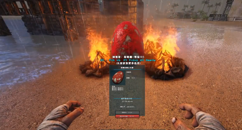 最实用的孵化方法是摆放7个篝火围成圈,添加木头点燃后把龙蛋丢弃在中间。注意看蛋上方的金色进度条和红色血条,金色条代表孵化进度,血条则是蛋的生命值。如果提示太冷就增加篝火,太热就熄灭部分,保持温度稳定才能顺利孵化。空调是更高级的选择,61级解锁后放置5-12台能自动调节温度,特别适合飞龙蛋这类对环境要求高的蛋种。