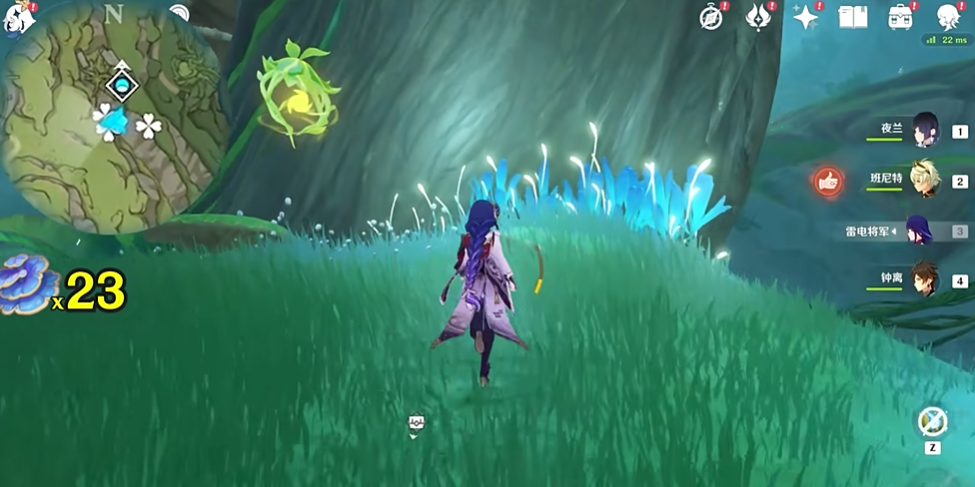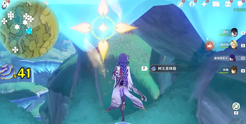 无郁稠林是树王圣体菇最密集的区域,共分布24-30个采集点。西侧传送点附近有12个点位集中在蘑菇伞柄夹层中,需借助四叶印移动;东线11个点位多位于地面树根处,部分需从地下洞穴入口进入。降诸魔山区域6个采集点分布在山体内部平台,建议从山顶传送点反向探索。水天丛林的20个点位主要分布在树干凸起平台,需灵活运用风场和四叶印攀爬。