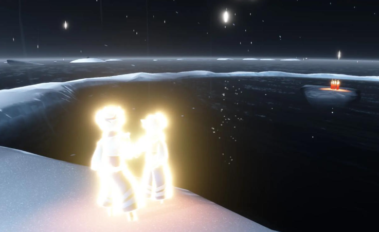 水试炼最后一步的关键在于拿到小金人前的无敌金身和滑行技巧。首先咱们要找到终点处的黑色雕像,靠近后点击打坐按钮触发动画,这时候你会变成金光闪闪的小金人,获得在水面自由行走的能力。这个状态可以让你不再怕水,直接冲向终点的光翼。注意滑行时要控制方向,别太激动冲过头错过光翼哦!