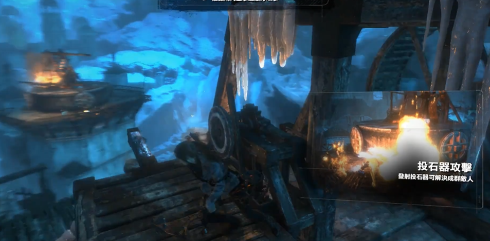 失落之城投石器场景要求玩家先修复设备:用绳索固定吊篮砸碎冻结的冰块,再调整投石器角度轰击铁门。需注意敌人干扰,建议提前清理战场或使用毒箭控制局面。所有解谜过程均存在时间容错空间,操作失误后可重新尝试,关键道具会持续保留在场景中直至谜题解决。