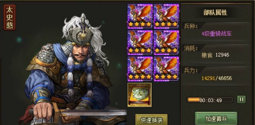 武将阵容建议选择太史慈、周泰、张飞和魏延的组合。太史慈作为主力输出,需穿戴朱雀套装以发挥两次战法的优势;周泰推荐使用真霸下套装提升防御能力;张飞配备真烛龙套装增强山地地形输出;魏延则携带真驱虎套装补充控制。阵容排序应将肉搏能力较弱的太史慈置于首位,魏延次之,张飞第三,周泰最后收尾。