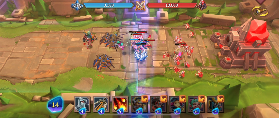 战斗初期需快速部署防御塔形成屏障,炮车应置于后排保证持续输出。面对海量小兵时,优先释放范围清兵技能如火球术或旋风斩,避免敌方堆积突破防线。英雄站位需分散以减少群体技能伤害,肉盾型英雄如巨石车队应顶在前排吸引火力。当敌方英雄出现时,立即集火消灭,防止其释放高伤害技能干扰战局。若战线被压制,可临时撤退重整阵型。
