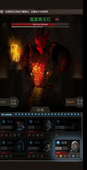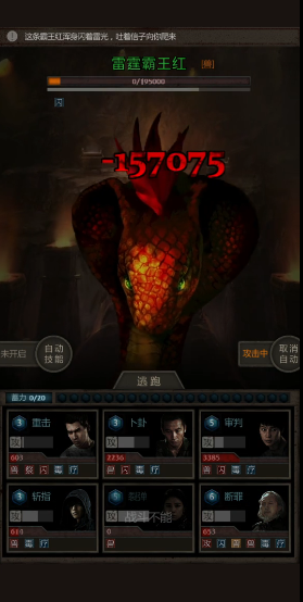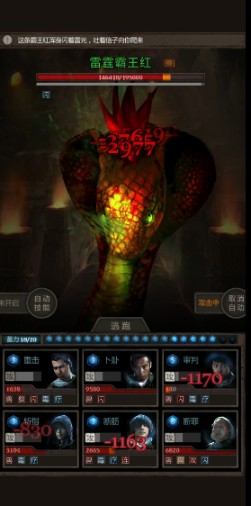搞定上古魔窟7层的雷霆霸王红,咱们得先摸清楚这家伙的套路。这货有两个恶心人的技能,一个是雷霆血雾,打人疼还带禁疗效果,另一个是电光火石,能给自己回10万左右的血量。最头疼的就是它放完血雾立马回血,要是输出不够的话简直就是白打工。所以咱们得憋着技能点,等它放完回血技能后,再让卢吉开加伤技能,小哥疯狂斩指输出,最后补两下平A就能带走它。