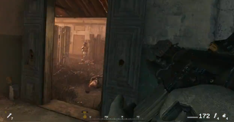 任务地图以密集的巷战区域为主,建筑布局呈现典型的阿拉伯风格,街道狭窄且视野受限。敌人会从屋顶、窗户等高处位置发动攻击,尤其在前往电视台的途中,武装皮卡和RPG射手构成主要威胁。玩家需注意利用掩体规避火力,同时优先清除敌方狙击手和重武器单位。电视台内部结构复杂,多层空间内分布大量敌军,建议配合闪光弹突破关键房间。