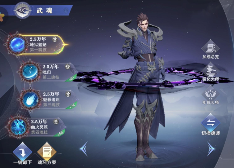 短时间战斗推荐猛兽系魂环,提升爆发伤害;长时间战斗则适合巨蟹系魂环,利用极速状态叠加伤害。40级前可以用222组合,40级后调整为2221,1代表猛兽系,2代表巨蟹系。魂技方面,优先选择提升速度和攻击的技能,比如疾风双翼和极速状态,这样能让风啸天在战斗中越打越强。