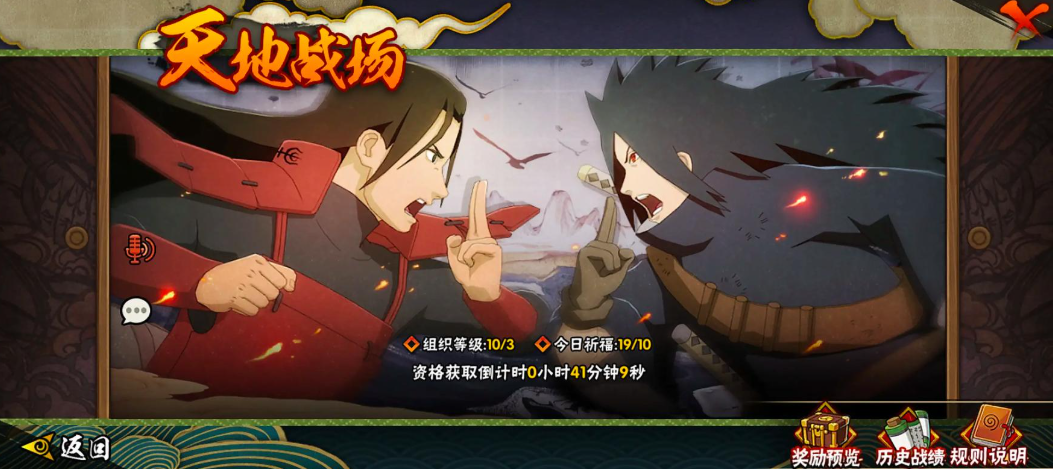 天地战场分为天之场和地之场,玩家需在匹配成功后选择其一,选定后无法更改。战场内会推荐特定忍者,使用推荐忍者可获得攻击加成。绝迹战场则属于限时活动玩法,需从决斗场的更多玩法入口进入,每局由6名玩家参与,随机一名玩家扮演BOSS融合白绝,其余玩家需协作对抗。未获得资格时,系统会通过邮件发放补偿奖励,玩家需注意查收。