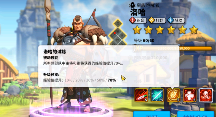 洛哈作为紫色打野将,二技能对野蛮人有35%额外伤害,三技能可为队伍提供70%经验加成。培养时不建议消耗通用雕像,通过活动自然觉醒即可。活动期间可将他与待升级武将组队刷野,但要注意其定位不适合PVP战场。头像碎片需集齐10个才能解锁武将,宝箱也有概率开出碎片,保持耐心多参与活动就能稳步获取。