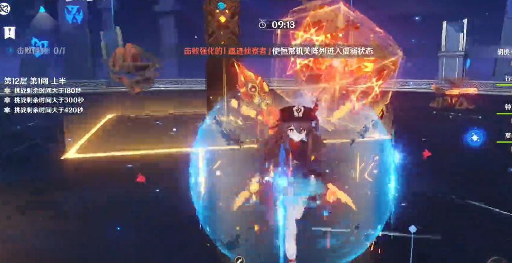 护盾角色几乎是刚需,能让你在分裂阶段的混乱场面中站稳脚跟。输出方面,推荐使用能快速打出高额爆发的角色,配合后台能持续挂上水、雷等元素的角色,通过前台主C触发强大的元素反应链来输出,比如蒸发、感电或超载,这样能有效压缩战斗时间。分裂阶段虽然要同时面对四个敌人的攻击,压力较大,但只要你开启护盾,并集中火力消灭正确目标,就能快速过关。其他三个没有血条的机兵完全不用理会,节省时间和技能。