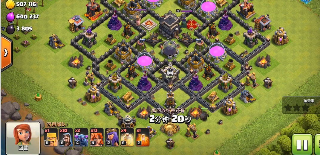 这要求玩家必须深刻理解各兵种特点并依据敌方阵型进行精密部署。相较于前中期,九本阶段彻底告别了单一兵种的无脑推进,进入了真正讲究策略配合的流派时代。你需要根据对手防御建筑的布局、援军类型以及核心防御(如防空火箭、女王、连弩)的位置,来灵活选择以地面突击为主还是空中优势为核心的进攻路线。任何一次成功的进攻都不是偶然,它建立在对兵力构成、法术搭配、英雄技能释放时机以及进攻路径规划的全面考量之上,这意味着出兵前细致的观察与思考远比盲目下兵更为重要。