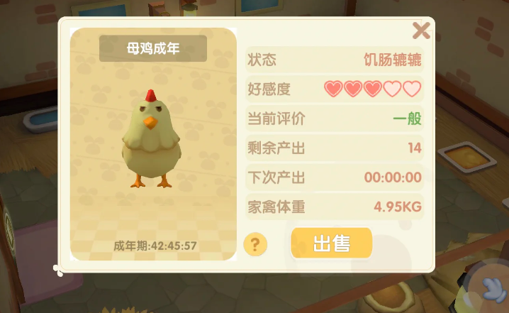 从幼崽期开始,大约经过两小时的成长,小鸡就会发育为成熟的母鸡,并开始稳定产蛋。鸡蛋每两小时可以收获一次,你只需要在家禽小屋内找到特定的捡蛋区域,点击手套图标就能轻松拾取。由于产出有固定周期,规划好上线时间定期收取,以免浪费资源。鸡蛋不仅是许多菜谱的关键食材,完成餐厅订单和提升部分NPC好感度时也都用得上,算得上是庄园前期一项值得投入的稳定产业。