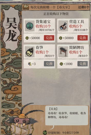与梅山七怪交易是获取特定物资的重要方式。梅山七怪并非单一个体,而是由不同角色组成,例如金大升、戴礼等,每位角色收购的物品和给出的兑换选项都有所不同。根据一份详细的收购价目表,像金大升(金牛角)倾向于接收莲藕、莲蓬等来自杭州府探险可直接采集的资源,而戴礼(火狗宝)则可能更愿意接收诸如过期加速票转化而来的废票。了解这些偏好可以帮助你提前储备对应物资,使交易更加划算。