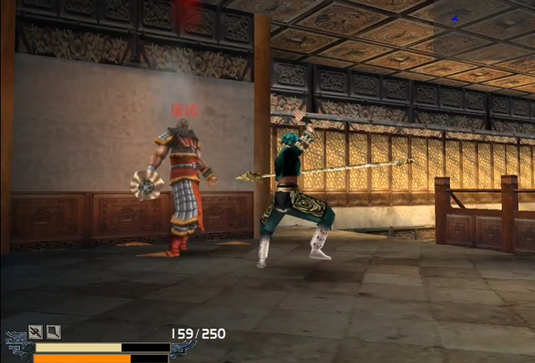 清理完二层的所有敌人后,便可进入楼阁三层,面对本关的最终对手屠城和范璇。你的终极目标是击败屠城,无需理会范璇,因为只要击倒屠城,范璇就会自动消失。在与屠城对决时,需要保持移动,观察他的攻击模式,其大招通常有比较明显的蓄力前摇,看到他要释放强力技能时,及时躲到柱子或墙体后面进行规避。抓住他技能结束后的僵直期,用金枪进行猛攻。战斗中可以留意场景中的隐藏补给点,例如三层楼梯旁的包子,在关键时刻能用来恢复生命值。