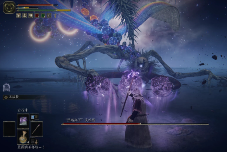 陨石杖前期必拿,智力S级补正和30%重力魔法加成让岩石球变成逃课神器,跑酷到盖利德贤者镇废墟就能捡到。中期转女王杖提升综合伤害,搭配名刀月影的居合斩剑气应对近身战。护符首选魔法师块和魔力对蝎,强化爆发力。