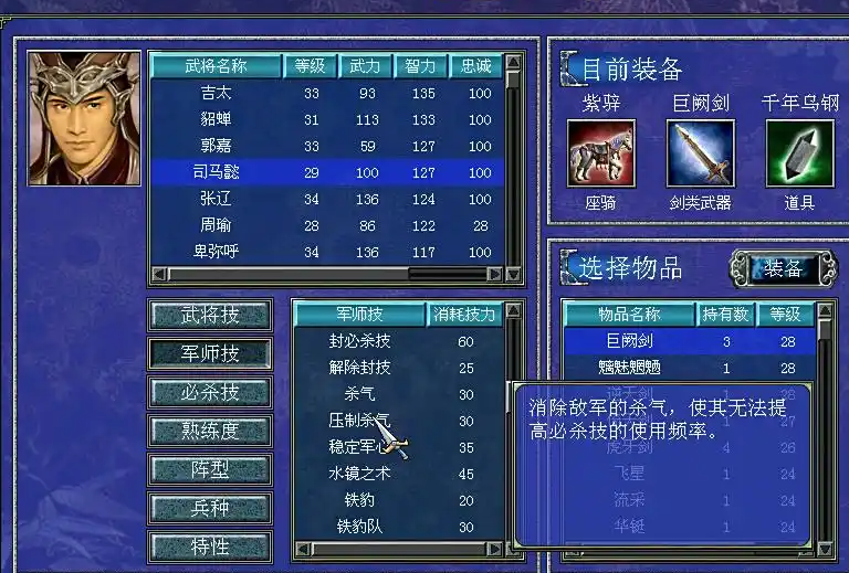 智力型武将也至关重要,他们能提供有效的军师技支持。诸葛亮、司马懿、庞统、周瑜等顶级文官拥有天地无用技能,这是由火牛裂崩、黄龙天翔和狂雷天牢组合而成的终极技能,能对敌军造成大范围杀伤。这些武将的智力高,军师技如增加技力高、恢复技力高能大幅提升队伍的持续作战能力,适合作为团队核心。例如诸葛亮拥有增加技力高和恢复技力高等军师技,庞统的军师技同样实用,尤其在后期大规模战斗中辅助效果显著。