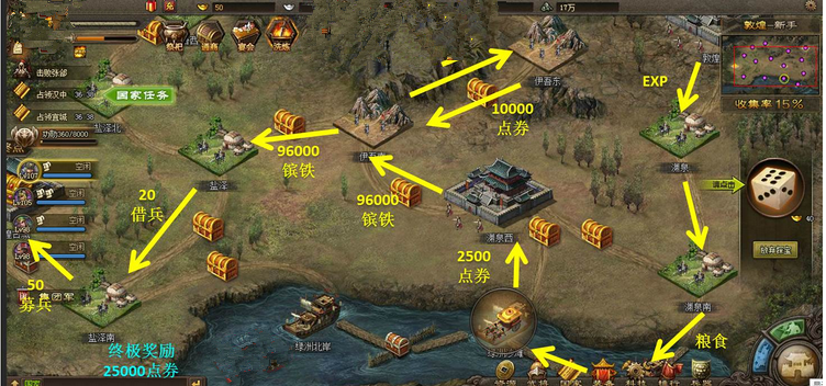 通关后可同步提升资源积累效率,日常优先祭祀镔铁与宝石,用多余装备溶解兑换镔铁强化兵器,募兵令集中用于副本尝试,减少重复消耗。国战中选择水域地形城池刷取经验与材料,快速提升武将等级与套装品质,为后续更高等级副本铺垫战力,形成闯关与养成的良性循环。