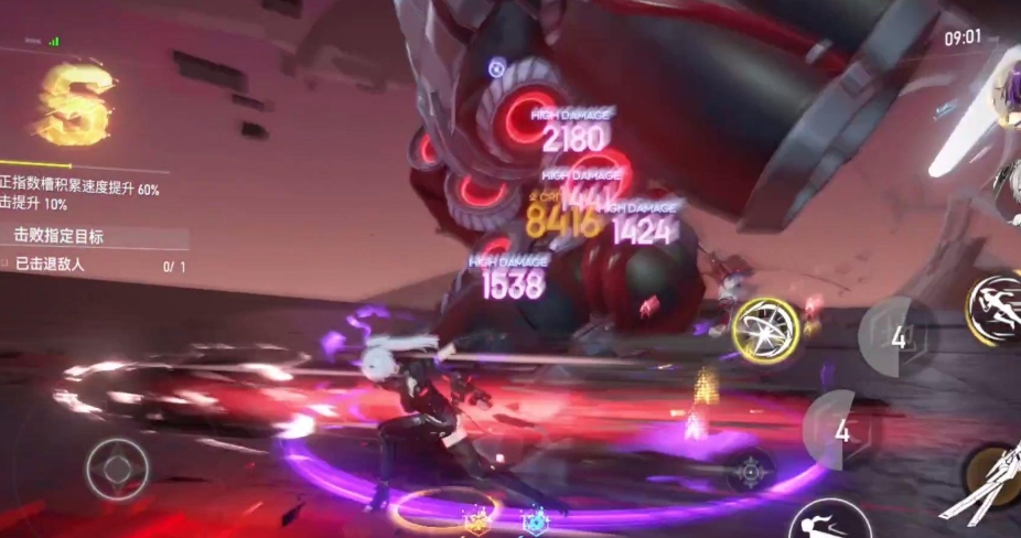 实战中,金乌的输出循环流畅且上限极高。开局通过普攻与二技能快速叠满曜标记,随后开启三技能进入滞空状态。空中以普攻快速积攒标记,满层后释放一技能倾泻所有标记,打出爆发伤害并叠加火羽增伤。二技能冷却完成立即释放,为团队提供减抗增益。保持滞空的关键是持续操作,确保普攻、技能与闪避无缝衔接,避免因操作中断落地。专武能大幅加快标记获取速度,升空或落地时直接获得大量曜标记,还能提升暴击率、神能上限与获取率,叠满后增益显著,是金乌的核心养成关键。