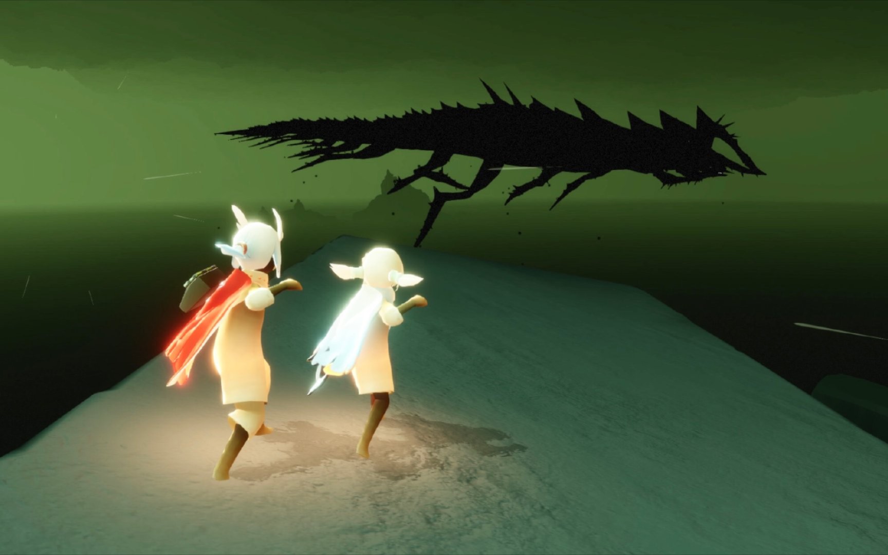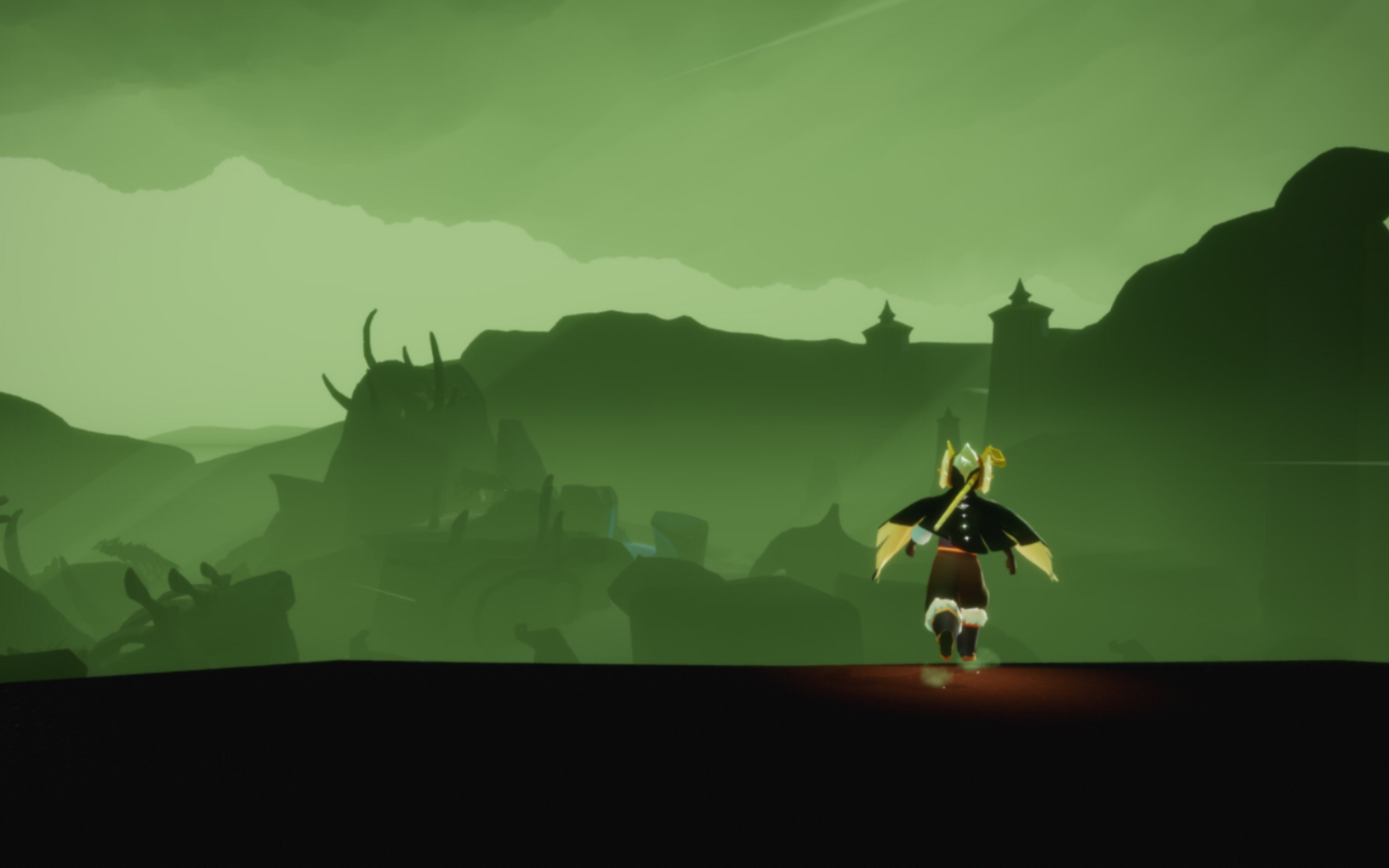首先从遇境进入霞谷大厅,在大厅右侧找到通往圆梦村的洞口,穿过屏障后顺着滑道向下滑行,滑行途中注意观察左侧建筑群,抵达圆梦村后,沿着溜冰场右侧的道路前行,谦逊舞者先祖就位于右侧房屋后方的位置,靠近后会出现蓝色星星标识,未收集过先祖的玩家需先完成回忆收集,点燃先祖虚影并跟随光影路径收集记忆碎片,直至左侧进度条填满,完成先祖解锁后才能正常触发拜访任务。
