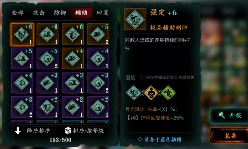 刻印选择需严格遵循颜色顺序,错误排列会导致套装效果失效,武器冰山之种固定红黄蓝蓝,护腿金刚铁臂固定蓝蓝黄,靴子灵燕飞舞固定黄蓝黄,镶嵌前先查看装备刻印槽位颜色,用重刻石调整至匹配组合,避免资源浪费。前期资源有限时,优先凑齐三个部位核心套装,剩余槽位用破魔、擒王、冷静散件填充,红色槽选破魔提升伤害,蓝色槽带冷静缩减冷却,黄色槽配擒王强化首领伤害,均衡提升实战能力。刻印可通过三个同级合成升级,逐步提升属性数值,成型后优先升级核心套装刻印,散件按需提升,避免平均分配资源导致强度不足。