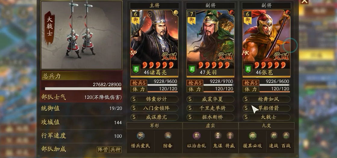 纵兵劫掠适配范围广泛,优先推荐给高速度、高武力的兵刃武将携带,最大化控制先手与伤害收益。关羽搭配白眉与纵兵劫掠,能大幅提升战法触发频率,在自带战法爆发之余补充稳定强控,是蜀枪阵容的经典组合。张飞携带纵兵劫掠与落凤,可构建双控制体系,配合燕人咆哮的群体伤害,形成输出与控制的双重压制。潘璋带纵兵劫掠可与自带战法叠加震慑概率,打造高频控制链,有效克制依赖主动战法的法师队伍。赵云佩戴纵兵劫掠搭配破阵摧坚,凭借洞察免疫控制的特性,能稳定先手破防并施加震慑,提升阵容整体压制力。