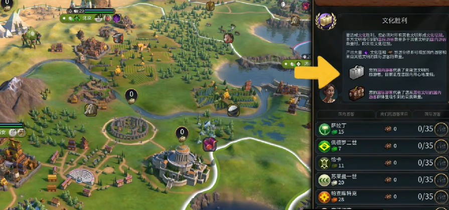 文化胜利的核心在于积累旅游业绩,而老秦的长城就是最佳帮手。每段长城不仅能提供文化值,解锁飞行科技后还能转化为等量旅游业绩。咱们需要尽早铺开长城网络,同时抢下关键文化奇观如紫禁城和百老汇。中期通过考古学家挖掘文物填充巨作槽位,后期配合国家公园和摇滚乐队进一步提升旅游输出。文化胜利的关键是让国际游客数量超过其他文明的国内游客。