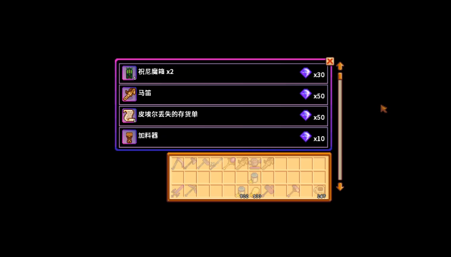 攒够50个齐钻后,直接在商店兑换唤马笛。拿到手后,把它放在背包里,随时可以右键使用。无论是在沙漠、姜岛还是其他地图,只要点击就能把马儿召唤到身边,特别适合赶路或临时需要坐骑的情况。只有自己农场养的马才能被召唤,野外遇到的马无效。