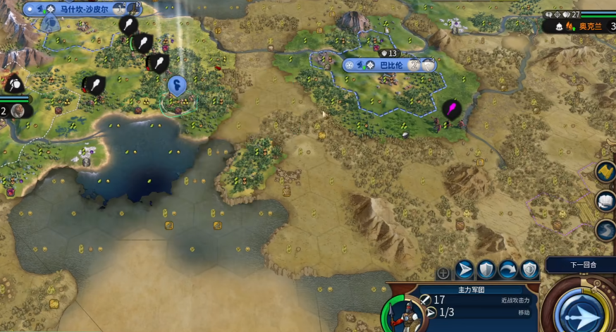 巴比伦打征服的核心思路是利用特殊能力快速解锁跨时代兵种,通过科技碾压实现早期压制。咱们开局要优先找有高粮地块的首都,二环内至少要有3个能建矿山的地块,奢侈资源矿山放在三环也行。工人出来前记得让总督梁先干活,如果前期总督点不够就直接升二级老马。采矿科技和工人差不多同时到位后,直接改好3个矿山,工业区可以缓一缓,因为早期矿山的两锤加成实在太强了。