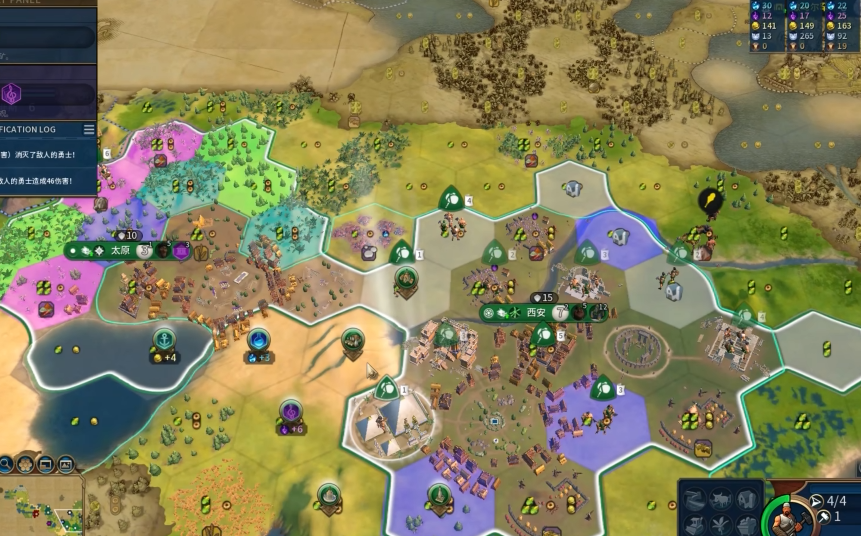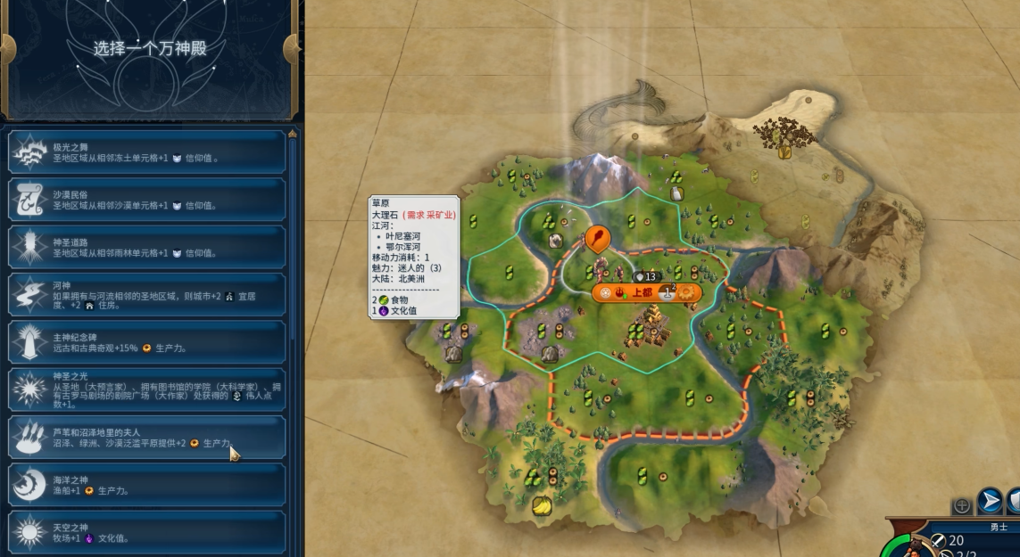 早期积累25信仰激活万神殿是关键,开局记得挂上+1信仰的政策卡。如果周围有山脉或自然奇观,极光之舞或神圣道路也能提供额外信仰加成,但这类地形依赖性强,不如收获女神稳定。收获女神的优势在于开发资源时提供额外产能,配合老秦的工人加速特性,能快速滚起雪球,无论是砍树收割还是铺城都更高效。