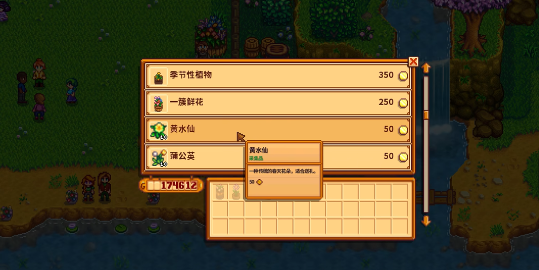 春季野花作为节日限定商品具有双重功能,既可作为装饰品布置农场,也能作为低成本礼物提升NPC好感度。摊位提供的野花组合包含蓝爵士、黄水仙和蒲公英等春季特有品种,这些植物在常规采摘中获取难度较高。野花特别适合用于提升初期与潘妮、莉亚等喜爱春季植物的NPC关系,其性价比高于市售工艺品。购买时建议储备5-10组以满足日常送礼需求。