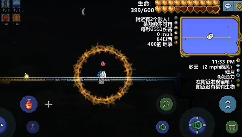 悠悠球手套是解锁双悠悠球玩法的关键,需在困难模式下从骷髅商人处以50金币购买,装备后可在主悠悠球命中敌人时生成复制体协同攻击。若搭配平衡锤,每次攻击可额外触发两个平衡锤射弹,实现四段伤害。而毁灭者徽章由复仇者徽章与石巨人之眼合成,提供暴击率和伤害加成,进一步优化输出。天界壳则综合了天界石与月亮贝壳的属性,全面提升角色的近战能力与生存能力。