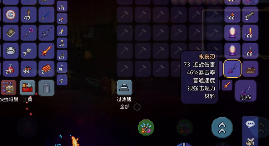 游戏里没有直接提示配方,但可以通过合成手册或者网上攻略查。比如草剑需要草块和木材,而更高级的武器可能需要击败特定怪物掉落的材料。如果发现某个装备一直做不出来,可能是漏了材料,或者没站在正确的制作站旁边。有些稀有装备甚至需要组合多把武器,比如永夜之刃就得先凑齐四把不同的剑才能合成。